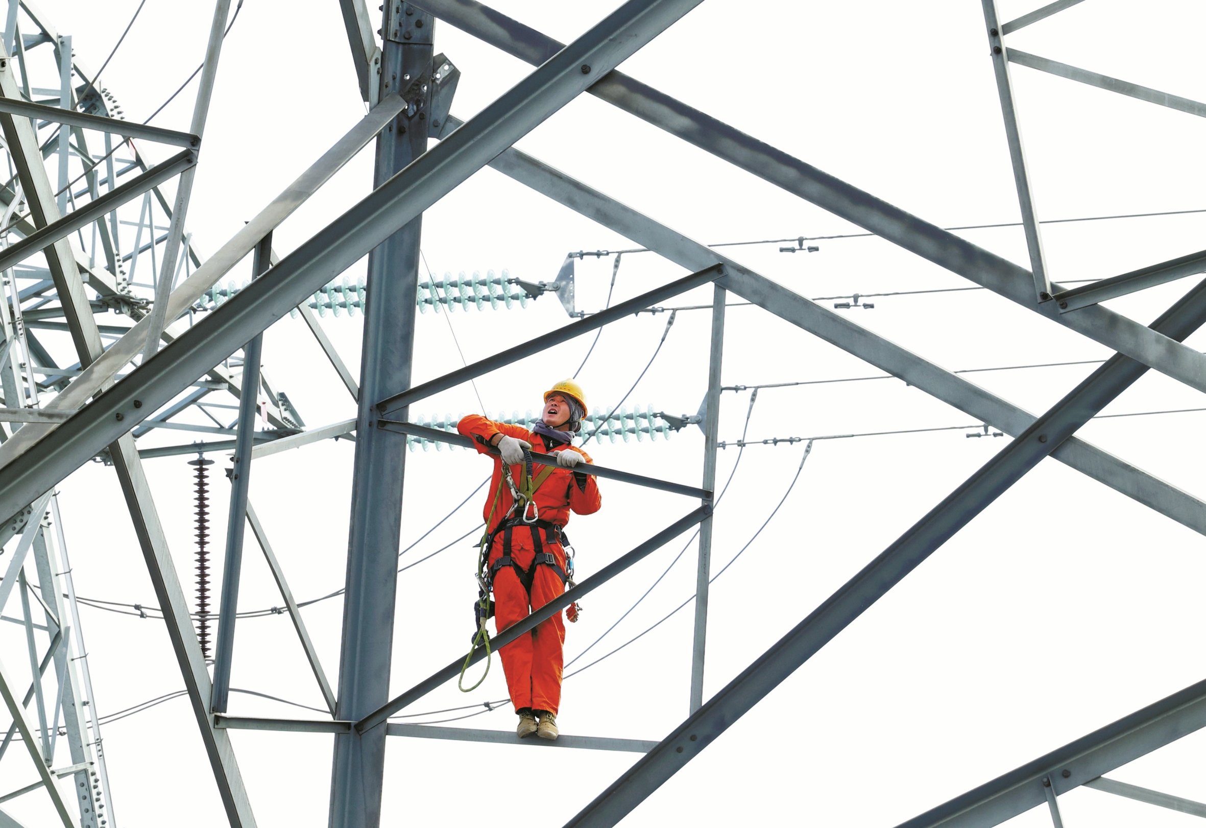 “这是为了防止作业时线路意外掉落,影响交通。”毛佳杰说,“之前跨越329国道时,我们采用‘老线带新线’工艺,最大限度减少对交通的干扰,保障交通安全。”