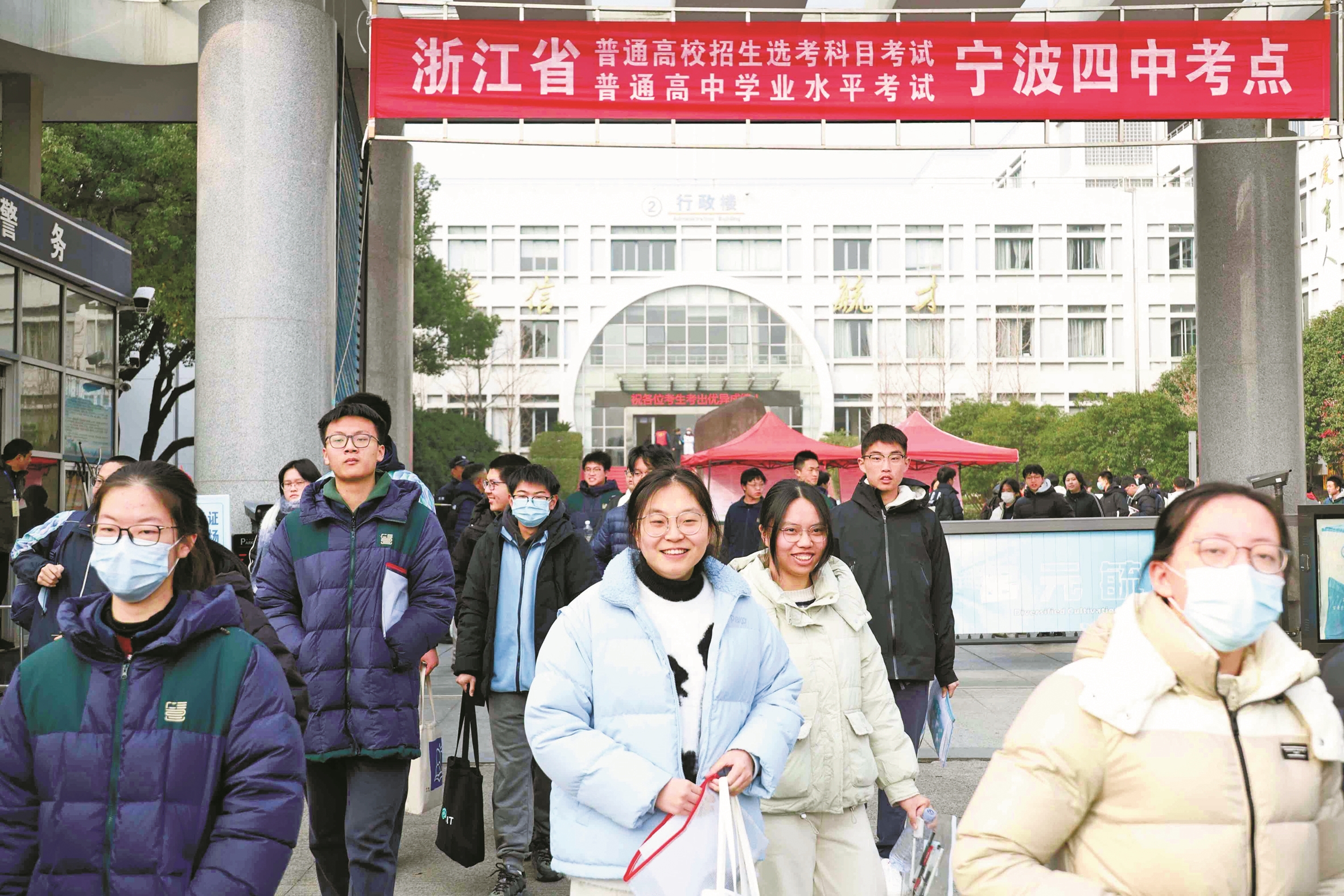 昨天,作为2026年首场大考,浙江省普通高中学业水平考试和普通高校招生选考科目考试拉开帷幕。宁波7万余名考生奔赴全市39个考点,在为期3天的考试中书写青春答卷。(陈结生 宣佳含 摄) 相关报道见第3版