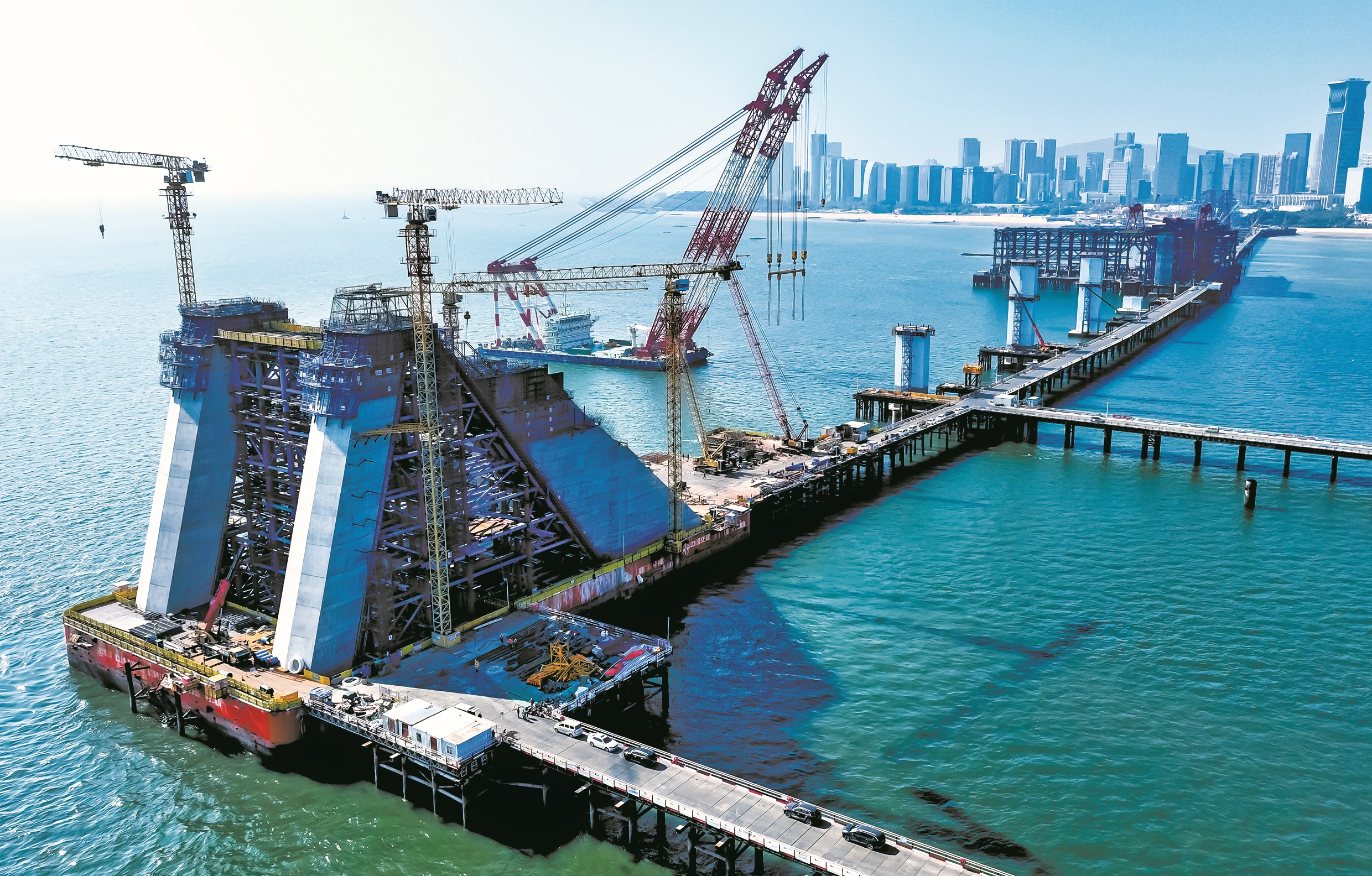 目前,厦金大桥(厦门段)项目跨海工程已从“立塔成型”转入“悬索成桥”关键施工阶段。