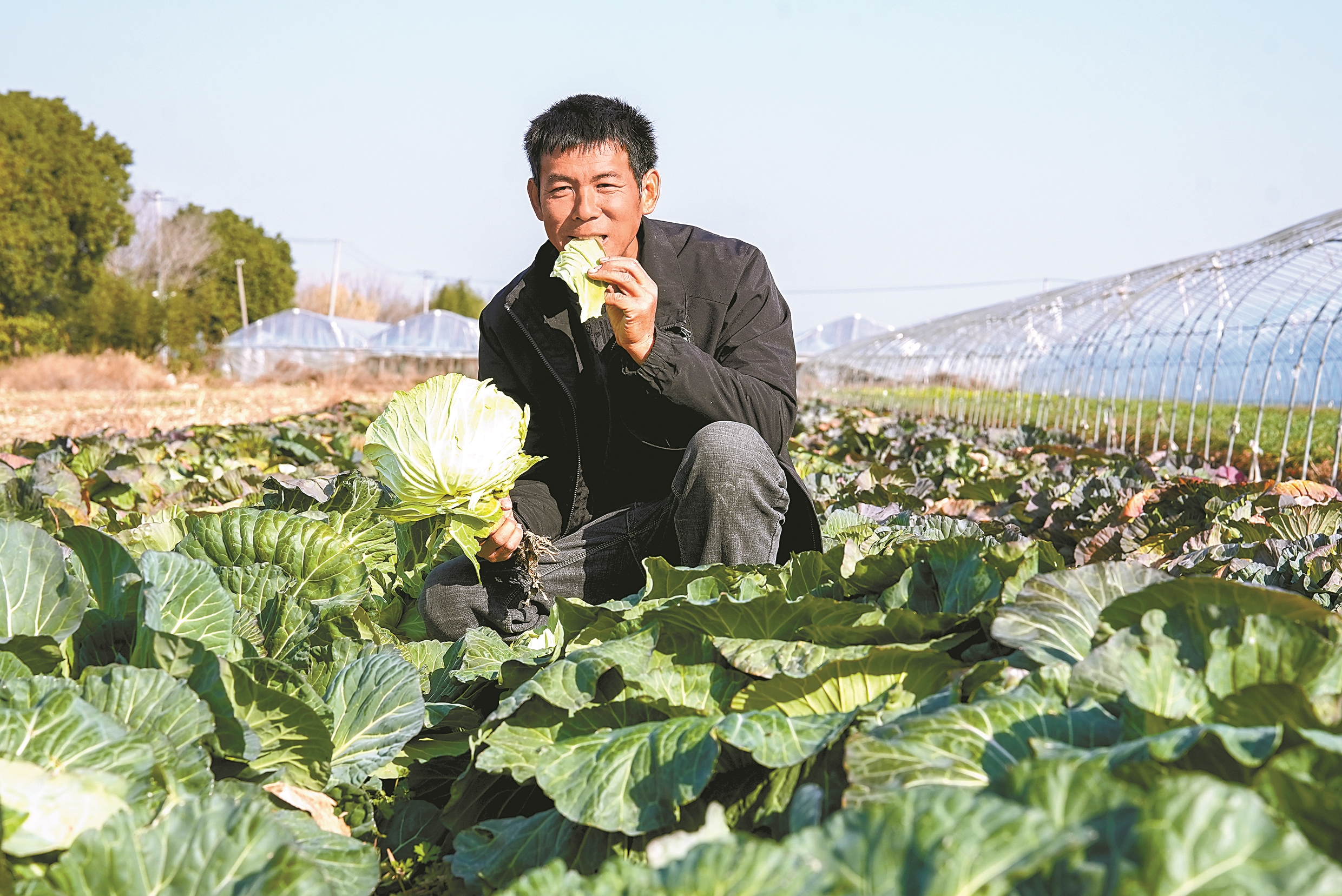 本报讯(记者王佳辉 通讯员方舟 方辰杰 范文颖)昨天,在江北慈城轩宁家庭农场的露天田地里,一颗颗饱满紧实的水果甘蓝犹如铺开的绿毯。农场负责人汪团林拨开外层微微泛红的叶片,展示内里紧实的菜球:“前段时间低温影响了卖相,但口感一点没打折,依然清甜脆嫩。”