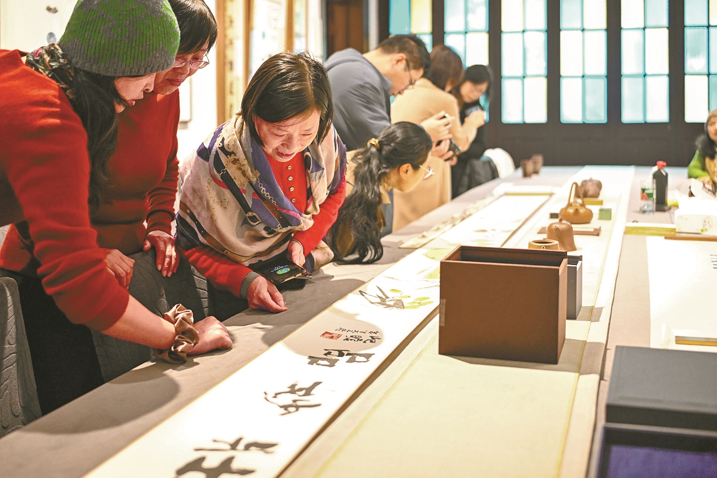 满堂悄然。有人俯身细辨印文,有人轻触镇纸上的梅痕。这些“小东西”仿佛忽然有了体温,有了呼吸。