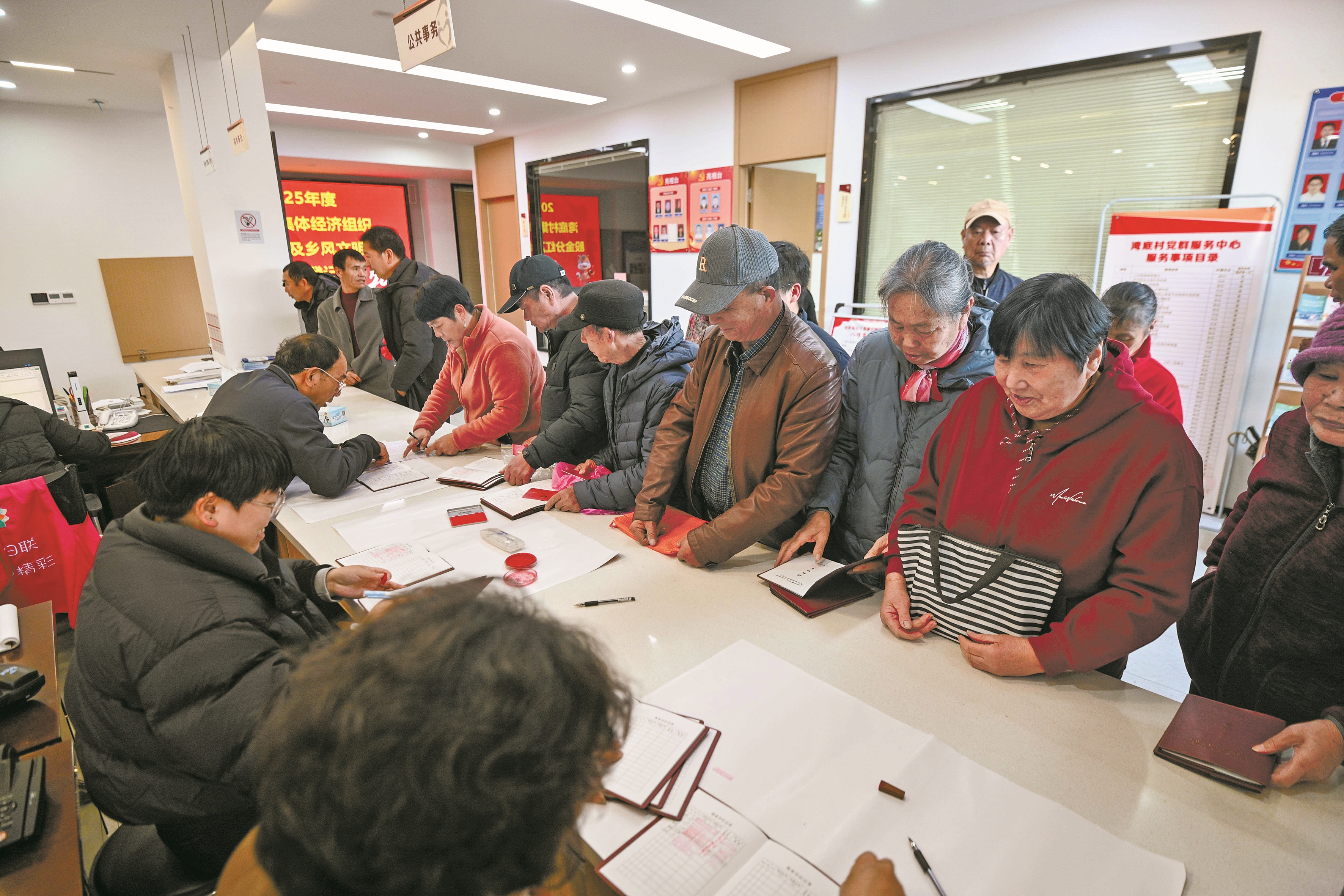 本报讯(记者冯瑄 王嘉彬 通讯员张梓萌)“我们家四口人,每人分到28000元,惬意!”昨日上午,在鄞州区的湾底村党群服务中心,一年一度的村集体经济组织股金分红及乡风文明奖发放启动,8时左右,村民陆福菊就出现在了现场的长队里。