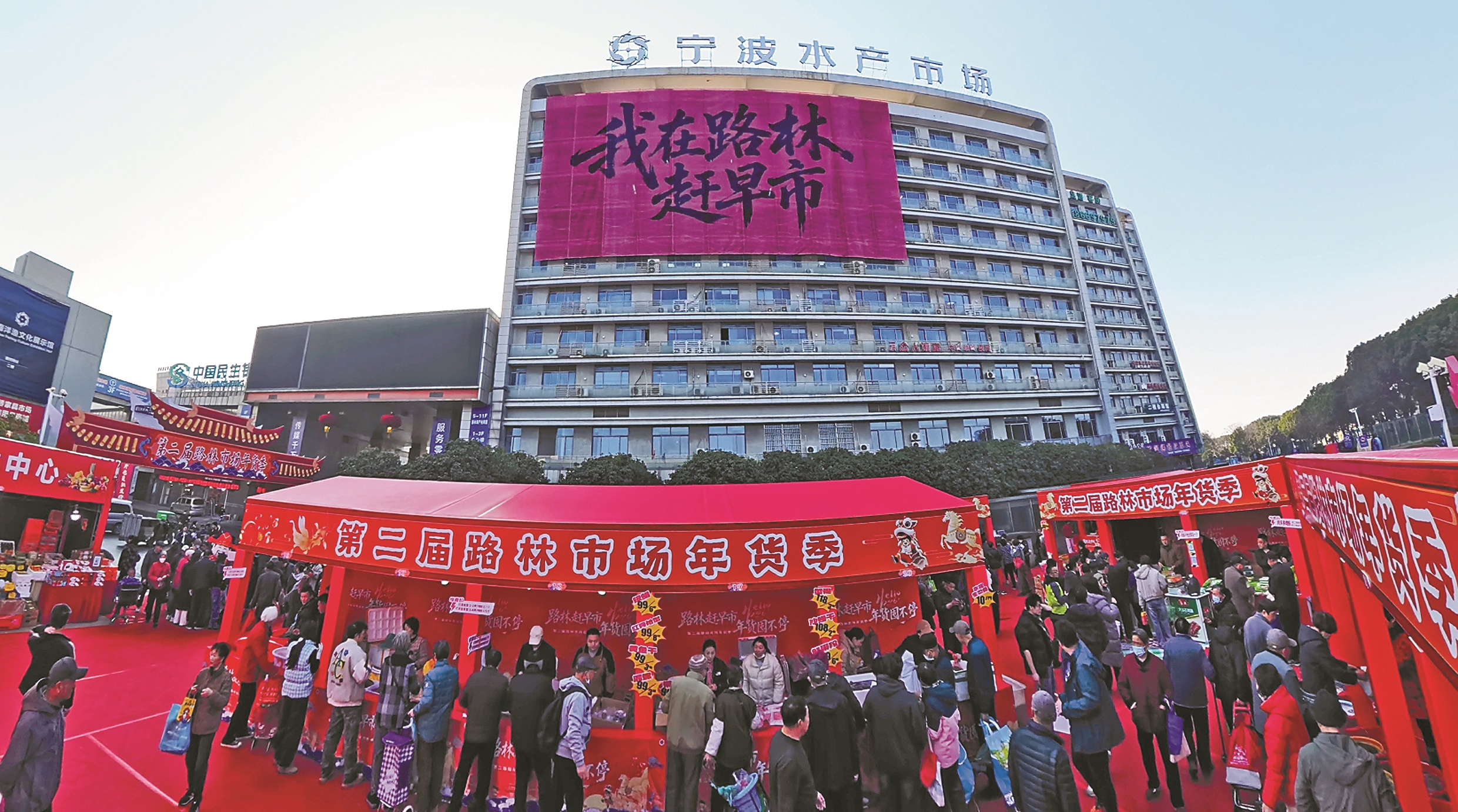 昨日上午,宁波水产品批发市场第二届年货季热闹开幕。本次活动为期3天,将持续至1月18日,设有早市区、咸干交易区和海蜇泥螺交易区三大活动区域,以“批发价售卖”为主要亮点,为市民打造一场物美价廉的“海鲜盛宴”。(沈世俊 王佳辉 顾佳诚 摄)
