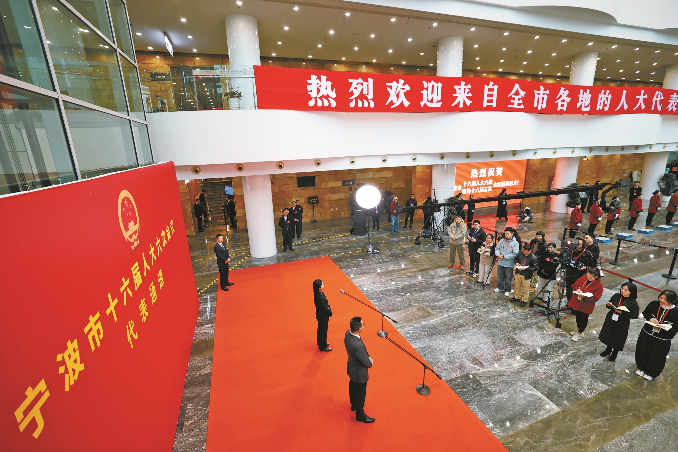 肩扛民生期盼,践行使命担当。1月21日,宁波文化广场大剧院内,宁波市十六届人大六次会议“代表通道”如约开启。