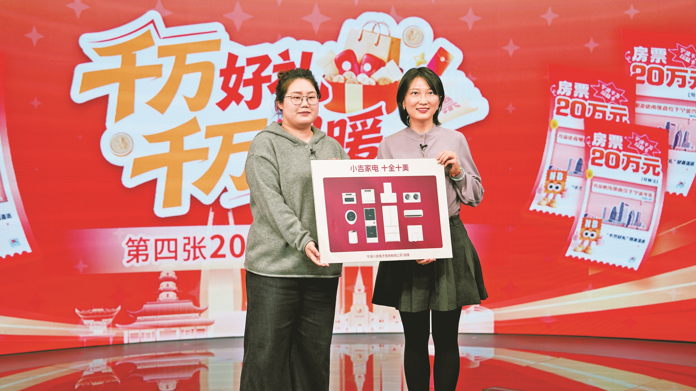 “恭喜王女士,20万元房票归您了。”昨天下午,宁波日报报业集团三楼演播大厅,宁波“千万好礼”第四张20万元房票尘埃落定,来自宁海的王女士成为幸运儿,中得房票。