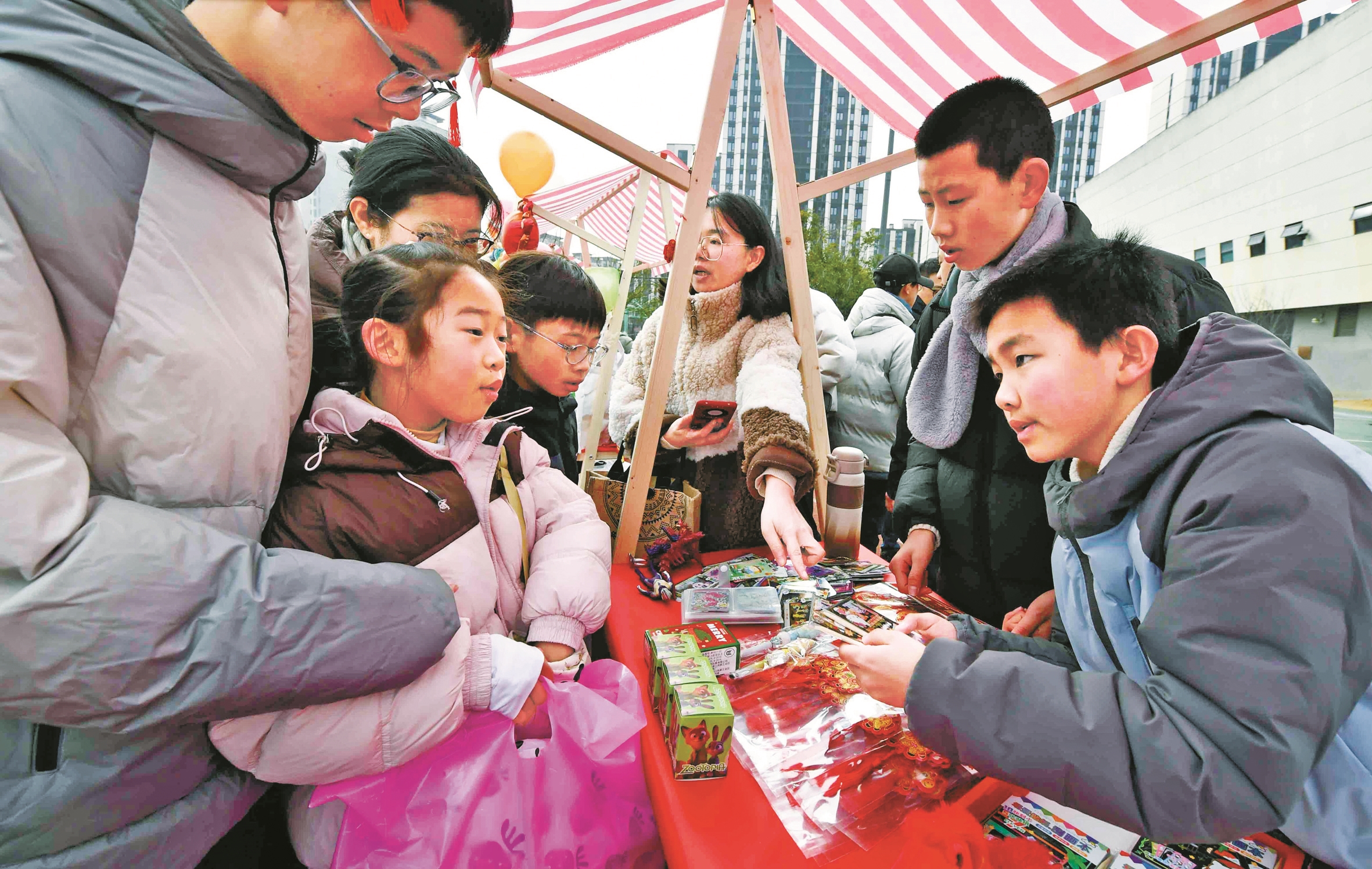 爱心义卖设置两大特色区域,共有150余个摊位,吸引3000余名学生及家长参与。