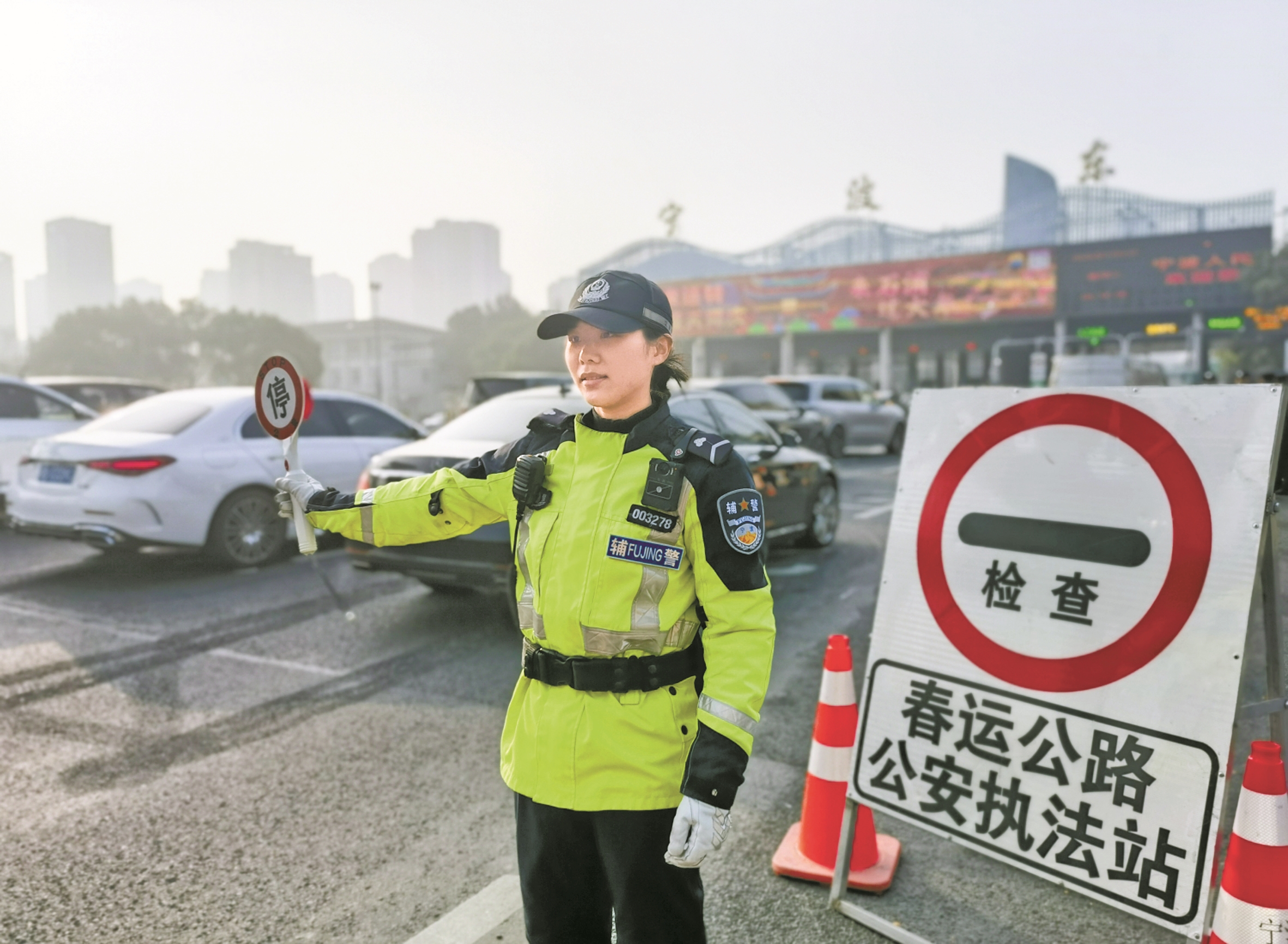 “昨天春运首日,我在此执勤,今天也是。”今年24岁的陈可珂,于2023年8月加入宁波交警,从事路面交管工作。她说,这是她第一次在春运执法服务站站岗,着实体验了一把守护者的感觉。“新奇”与“忐忑”是这两天最大的感受。