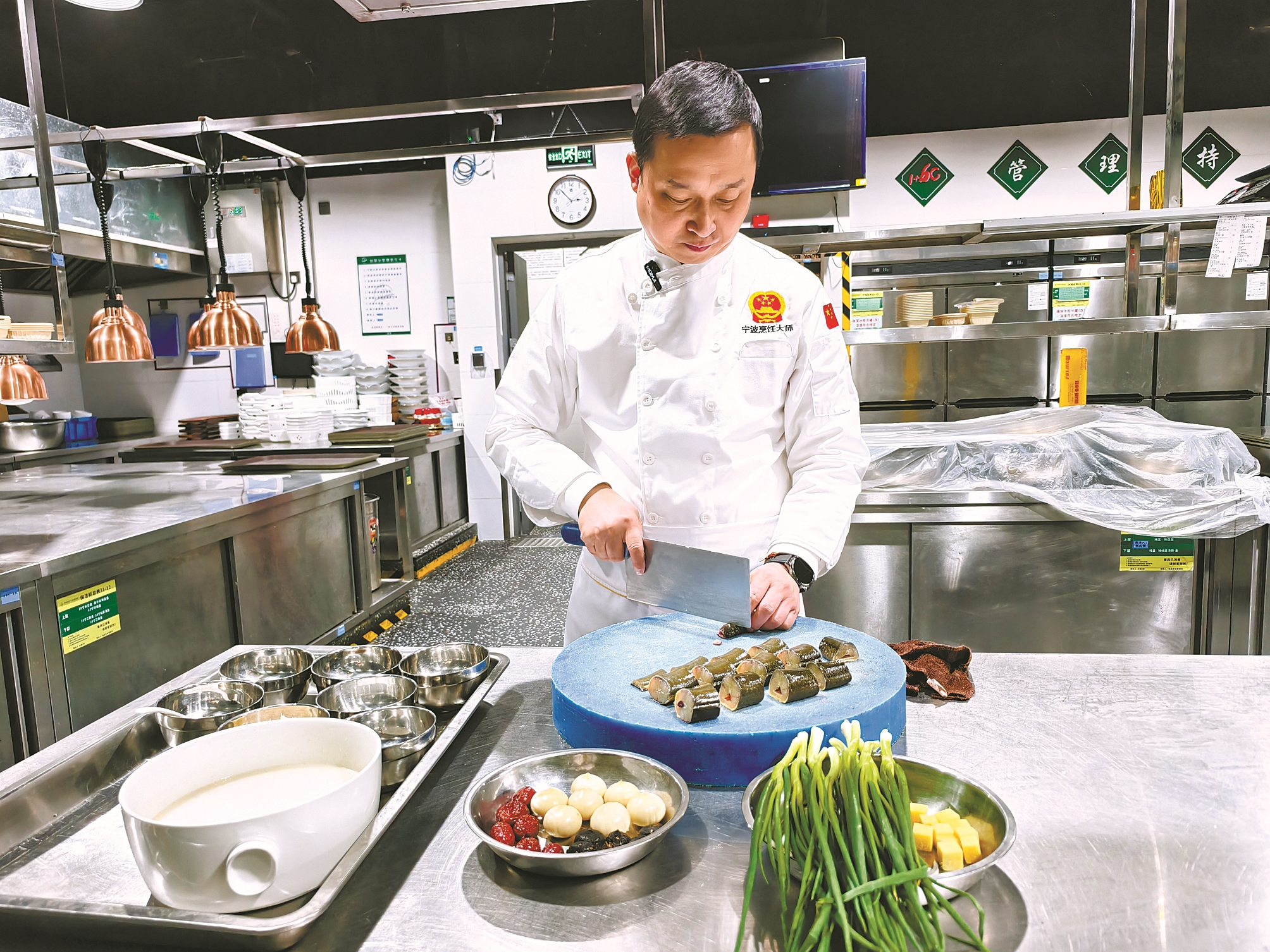 1988年入行的张永明,师从宁波饭店名厨。“上世纪八九十年代,饭店鱼缸里满是河鲜,婚宴上河鳗、甲鱼是标配。”他一边翻动锅中的河鳗,一边回忆,“现在选择多了,但老宁波对这口浓鲜的情结没变。”作为蒜香锅烧河鳗的非遗定点制作点,2025年滕头酒店集团的这道菜,光是顾客单点就卖出120万元,足见其受欢迎程度。
