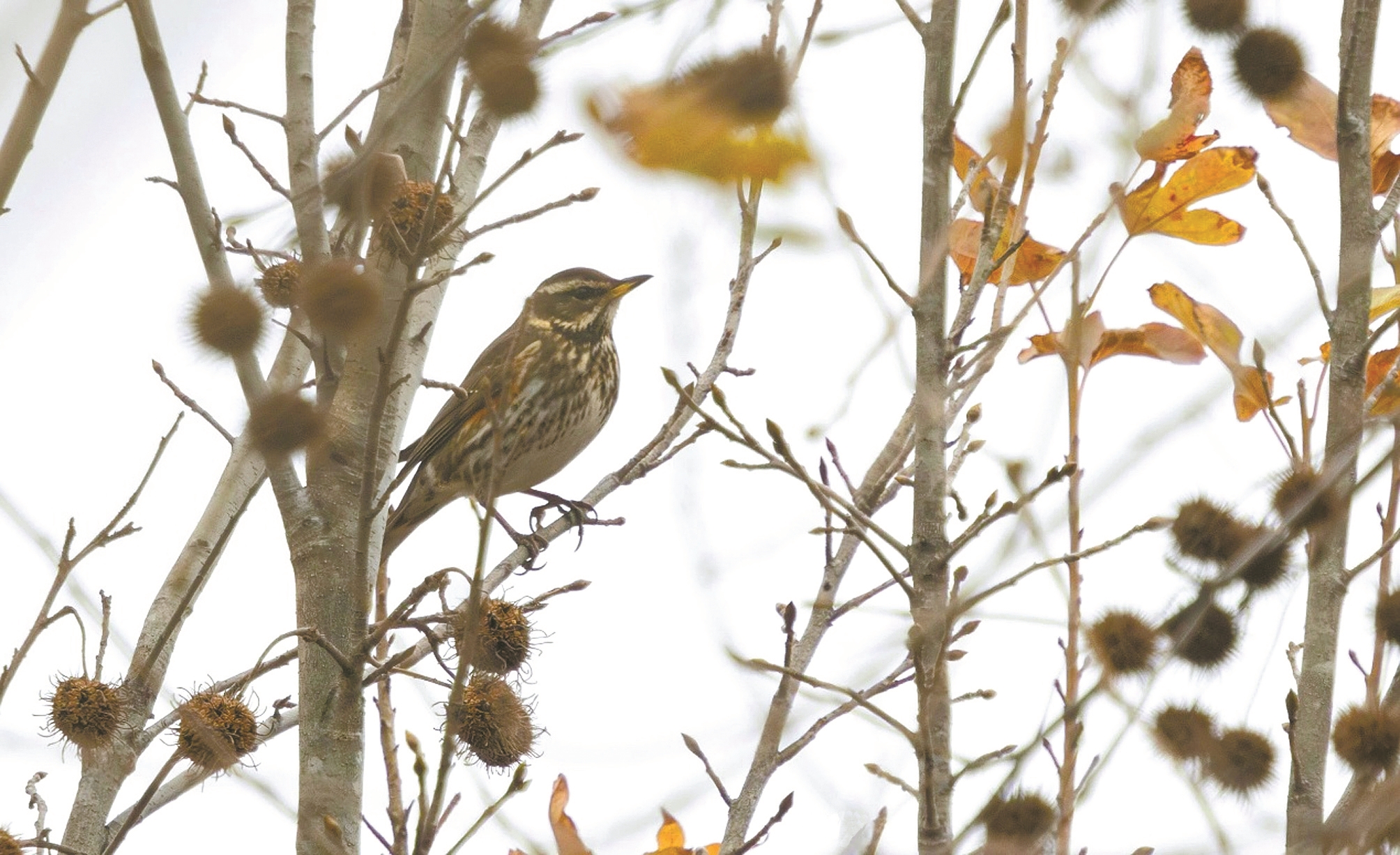 白眉歌鸫。(摄影爱好者“狸花猫”摄于仁湖文化公园)