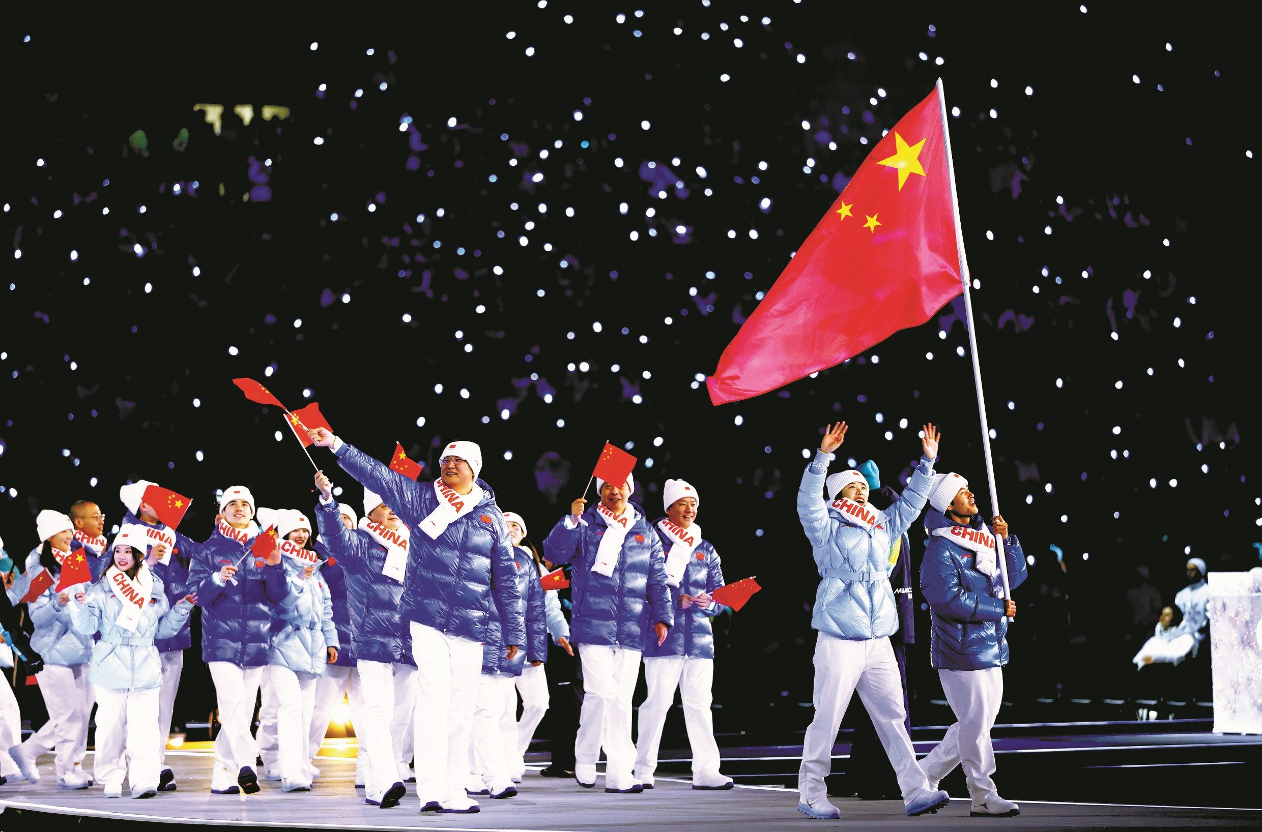 中国体育代表团共286人,其中运动员126人,将参加7个大项、15个分项、91个小项的角逐,创下中国冬奥会境外参赛项目最多、运动员规模最大的新纪录。开幕式上,速度滑冰运动员宁忠岩和短道速滑运动员张楚桐共同担任中国代表团旗手,引领队伍入场。