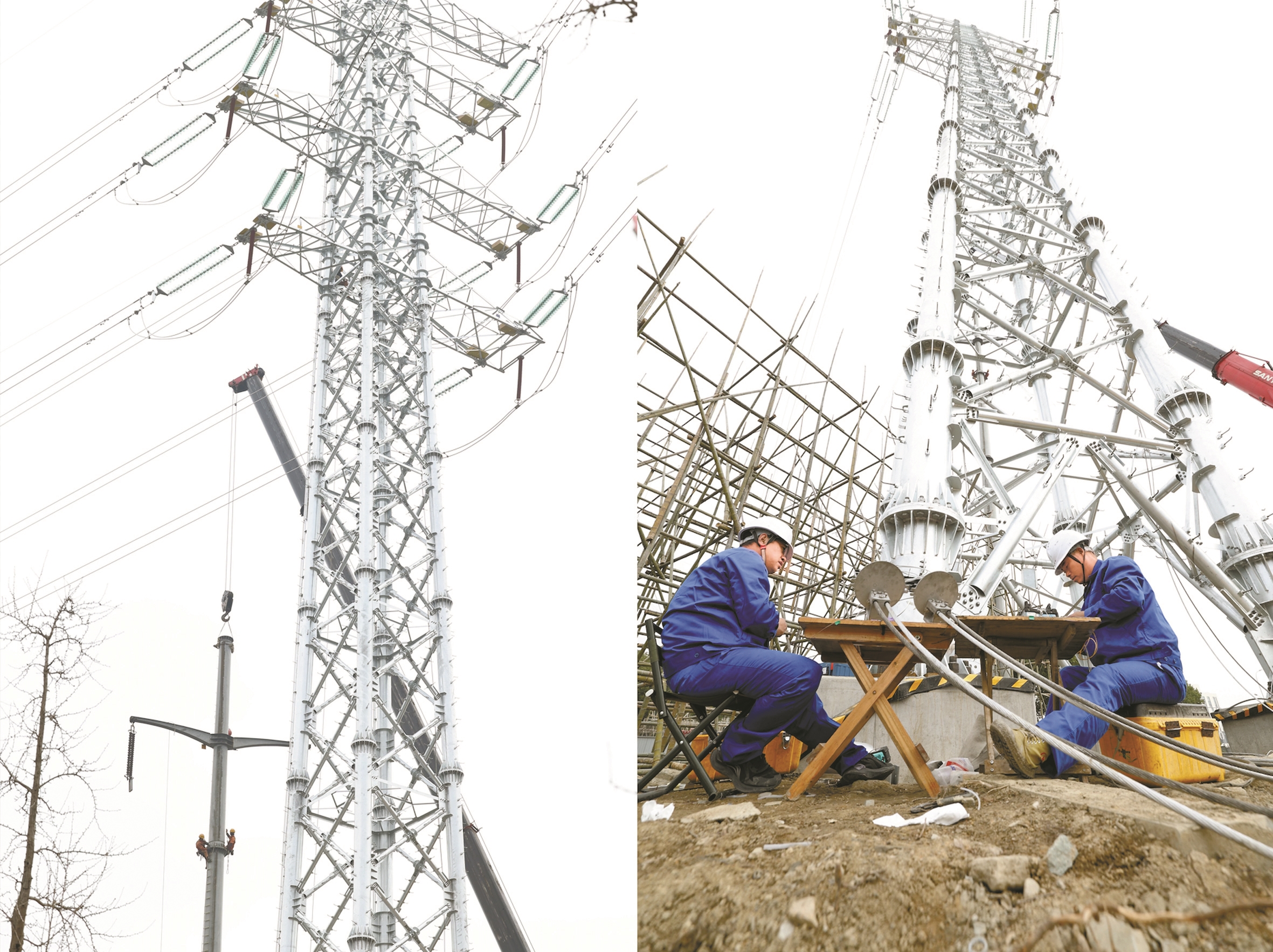 220千伏江育、江才线10号至13号塔段施工现场。 (徐能 摄)
