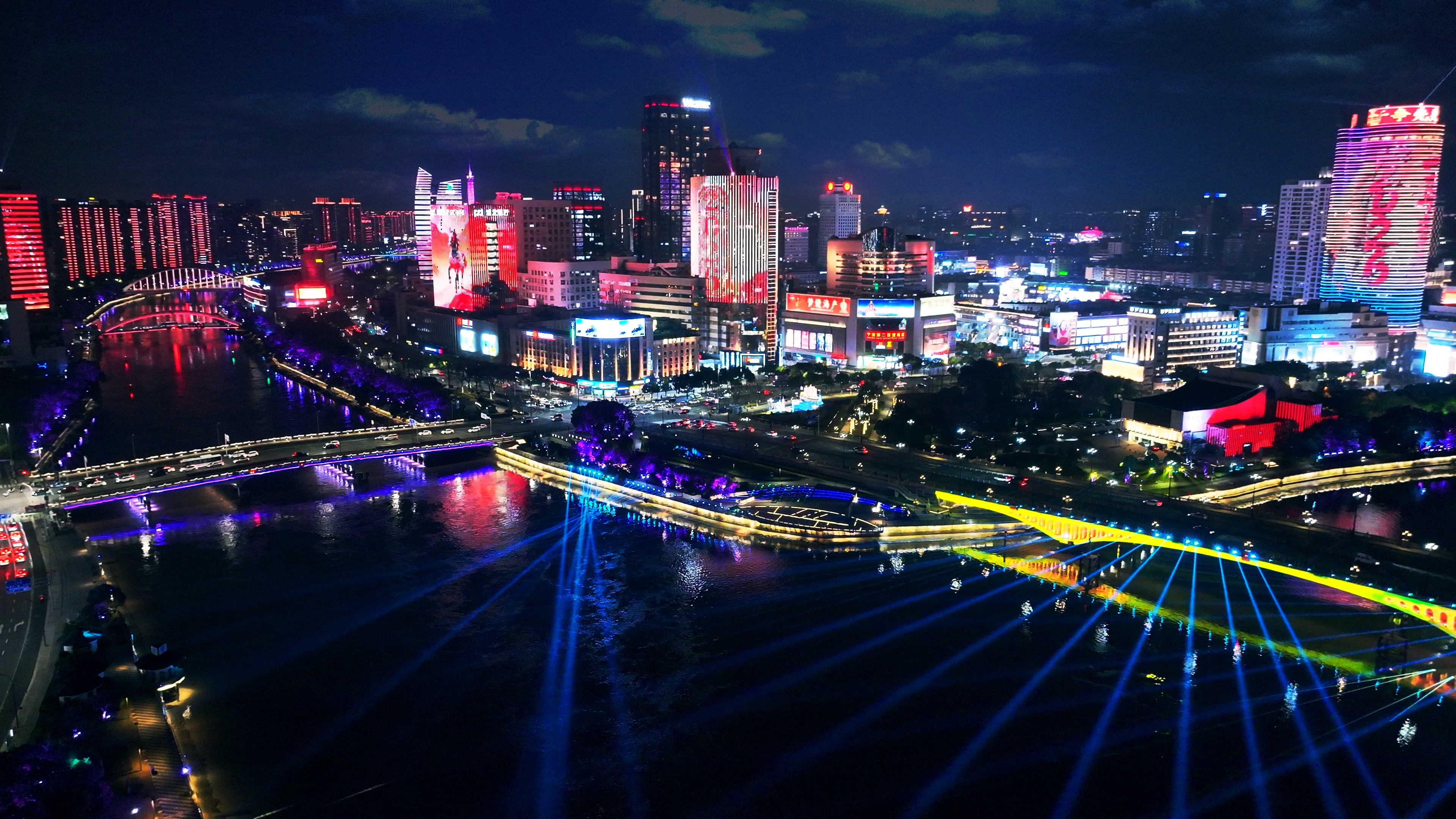这场光影盛宴以三江口为中心,联动东部新城、鄞州南部商务区、镇海新城等十处区域,覆盖70多栋建筑立面,形成全城共赏、气势恢宏的视觉盛景。