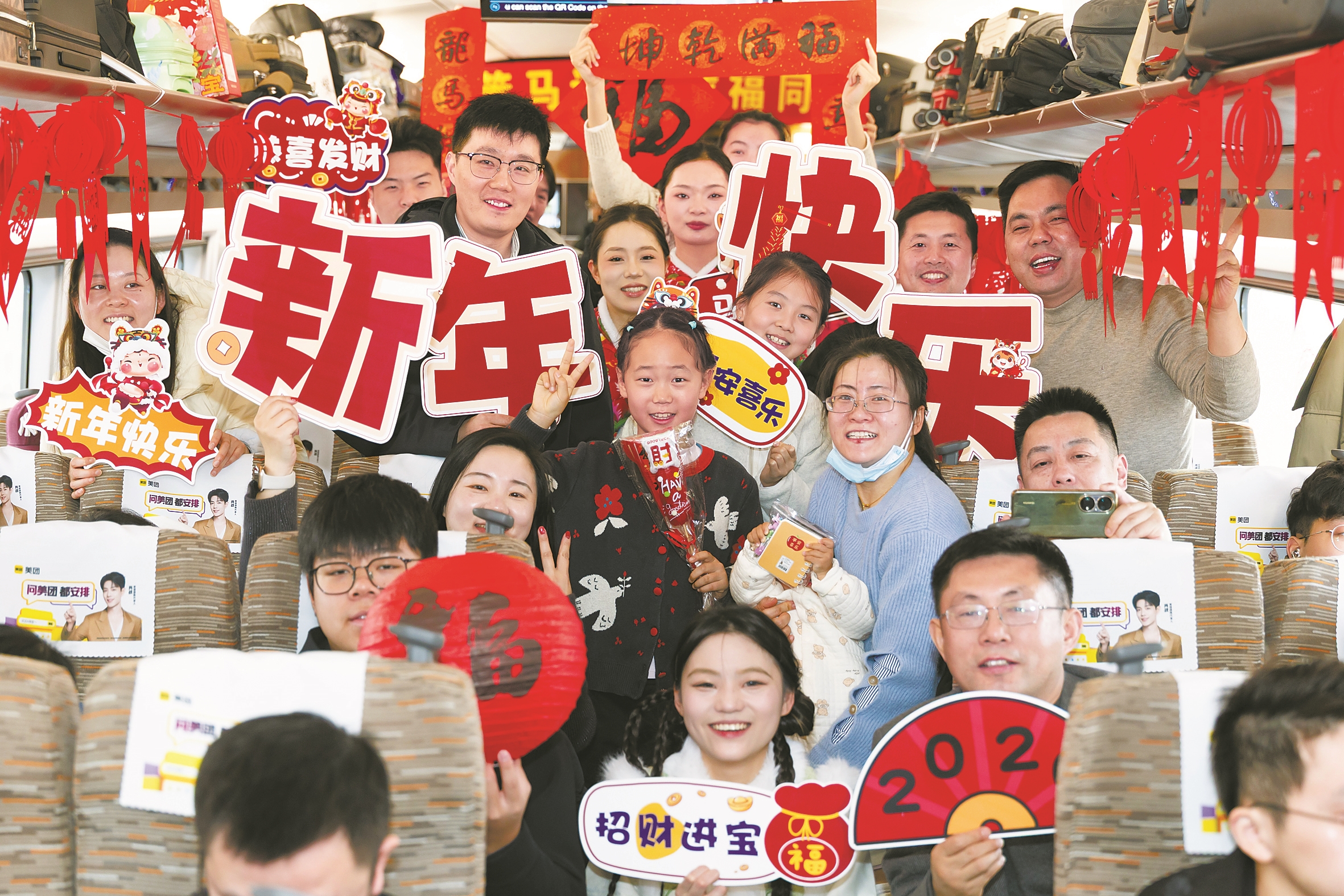 2月15日是春节假期首日,一场别开生面的“列车春晚”在上海虹桥开往汉口的G452次复兴号列车上举行。 (新华社发)