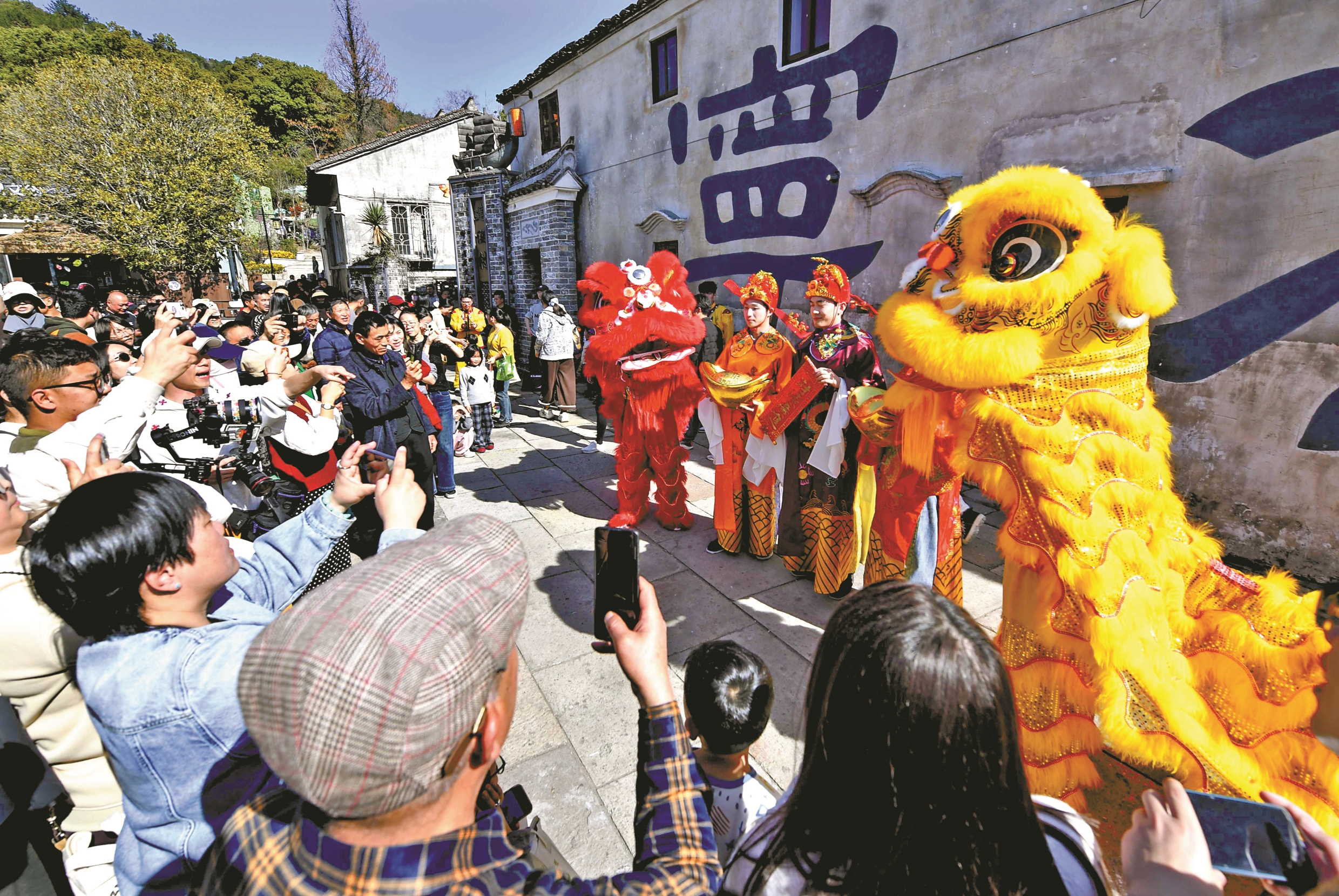 正月初一至初六,晴好天气持续,吸引大批游客前往东钱湖游玩。 在陶麓街区,传统舞狮表演热闹上演。雄狮腾跃、锣鼓喧天,将游客瞬间带入红红火火的喜庆现场,大家在欢腾的氛围中感受传统民俗的魅力,也收获了一份新春的吉祥与好运。 (戎美容 顾佳诚 严龙 摄)