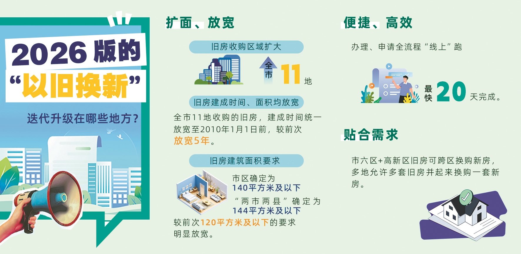 相较于去年开展的“以旧换新”活动,2026版有哪些迭代升级之处?记者从市住建局了解到,主要体现在四个方面: