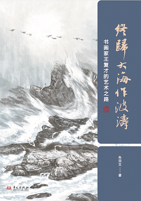 王复才出身贫寒,当过农民,从小爬山、涉溪、砍柴、割草、插秧、耘田,小学毕业便失去了升学的机会。然而他自小聪颖,会写会画,靠着脚踏实地的努力,一步一步走出一条通向绚烂前景的人生道路。他进了有“艺术殿堂”之称的浙江美术学院(现中国美术学院),毕业后分配在文化馆当美术干部,开始了真正意义上的美术事业。经过多番呕心沥血的勤奋努力,他获得了极大的成功,采风、写生、创作、入展、获奖、出画册、应邀为各地各单位画巨幅山水……他犹如一条小溪奔腾不息,汇向大江大河,汇向波涛汹涌的艺术海洋。他画山画水画大海,他对岛礁大海情有独钟,他用多重勾勒、多次皴擦、反复积染,表现出来的经千万年风雨侵袭而裂痕斑驳的巨石峻岩,成了他鲜明而独特的艺术风格,也成了他本人奋斗不息的性格象征。这一切都在朱田文的《终归大海作波涛》中翔实地体现出来了。