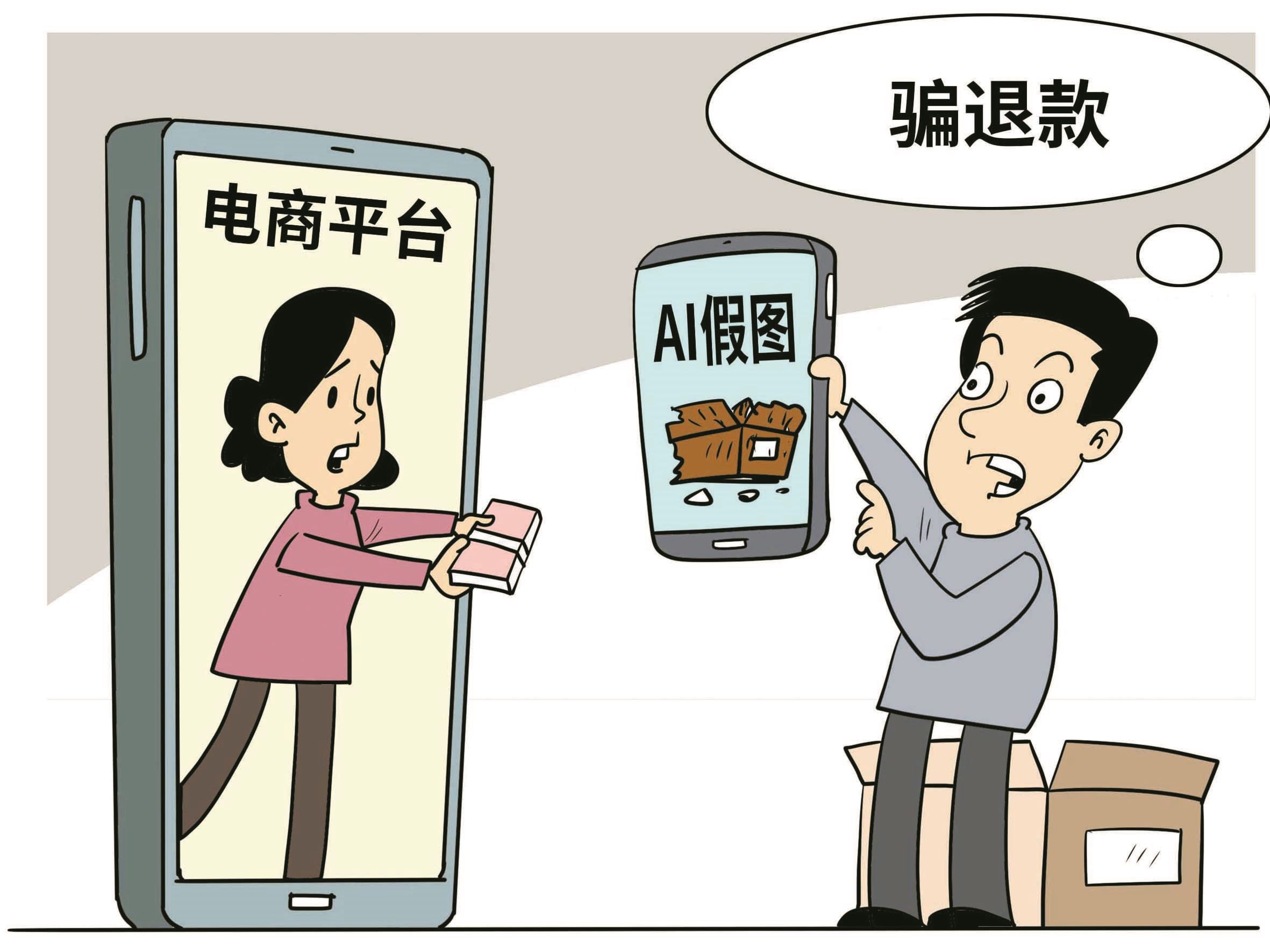 近期,全国多地电商平台出现“AI假图骗退款”事件:消费者利用生成式AI工具快速制作商品“破损”“变质”“污损”等虚假瑕疵图像,以“质量问题”为由申请“仅退款”。此类行为单笔涉案金额为几十至数百元,看似不大,却已形成灰色产业链,轻则伤害商户利益,重则侵蚀数字经济信任根基(3月2日《人民日报》)。