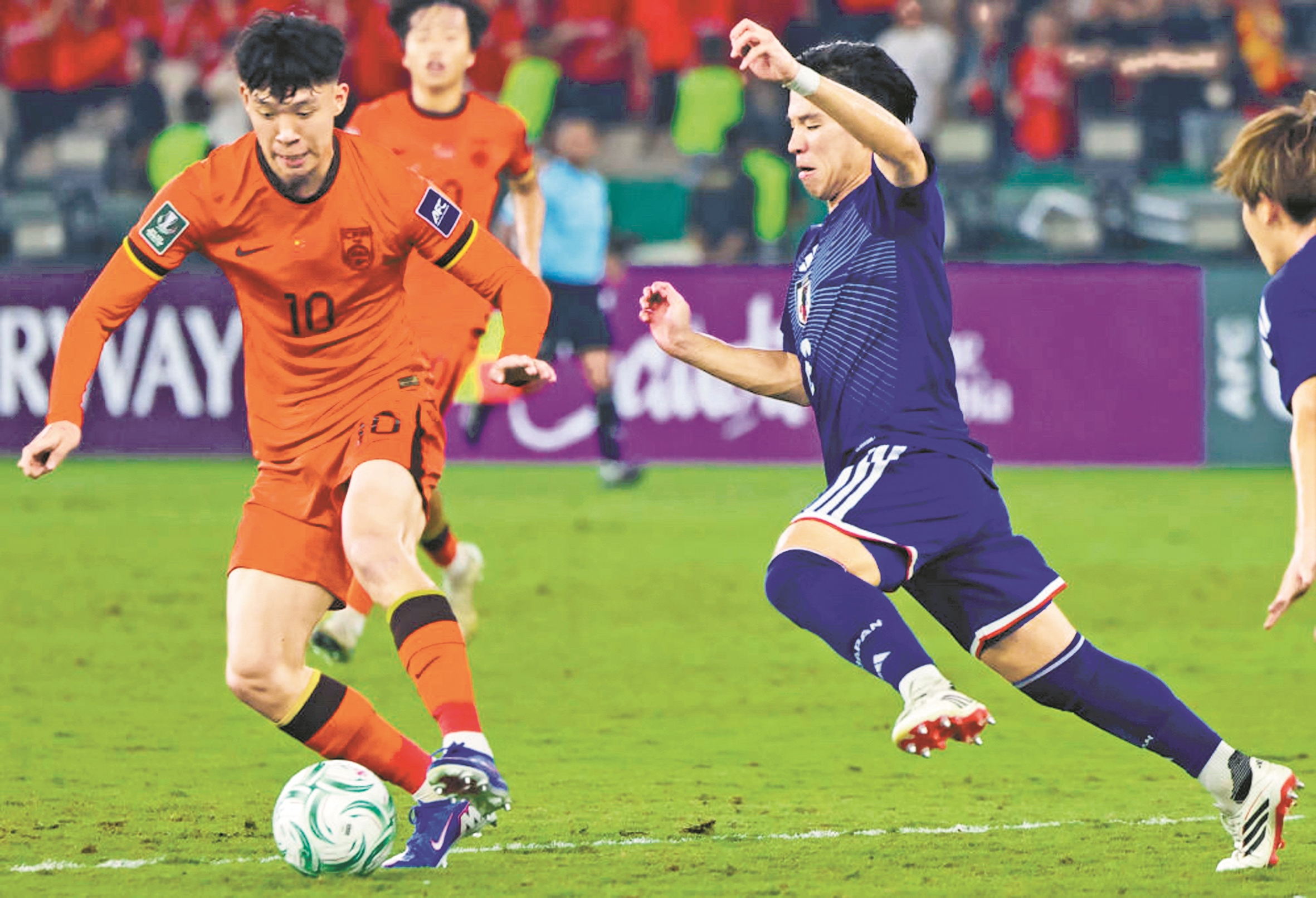 王钰栋(左)在今年的U23亚洲杯决赛中。(新华社发)