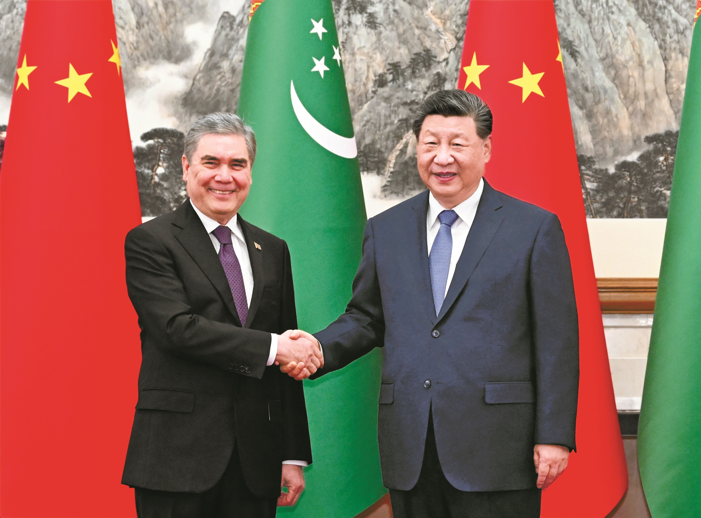 习近平指出,前不久中国全国两会成功召开,审查批准了“十五五”规划纲要。规划纲要的实施将为中国基本实现社会主义现代化奠定坚实基础,也将惠及世界各国。土库曼斯坦独立35年来,走出一条独立自主、符合自身国情的发展道路。马年伊始,中方愿同土方共商合作大计,共享发展机遇,推动中土命运共同体建设不断走深走实。