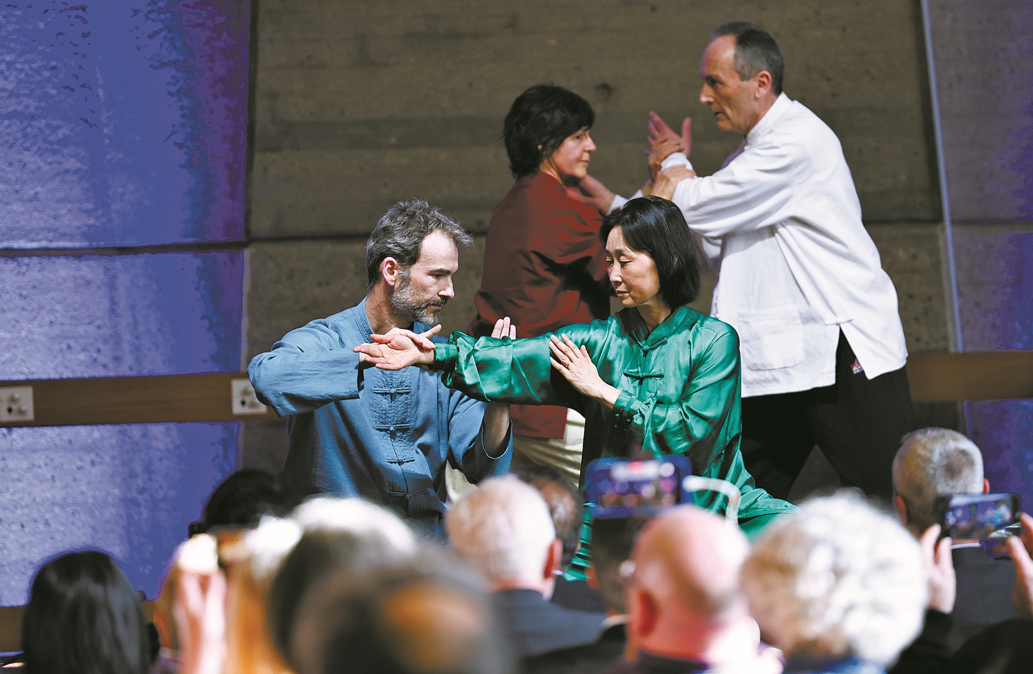 当地时间3月18日,首个“国际太极拳日”即将到来之际,以“健康生活,太极同行”为主题的庆祝活动在法国巴黎联合国教科文组织总部举行。来自中法两国的太极拳习练者同台献艺,展现太极拳的独特魅力与深厚内涵,向世界传播中华优秀传统文化和科学健康的生活方式。(新华社记者 邬惠我 摄)