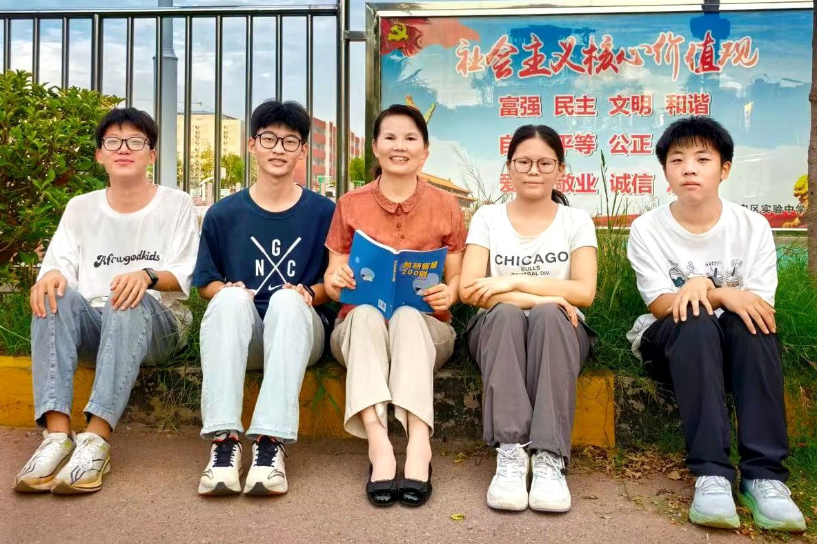 艾秀梅(中)和学生在一起。赵小钰 摄