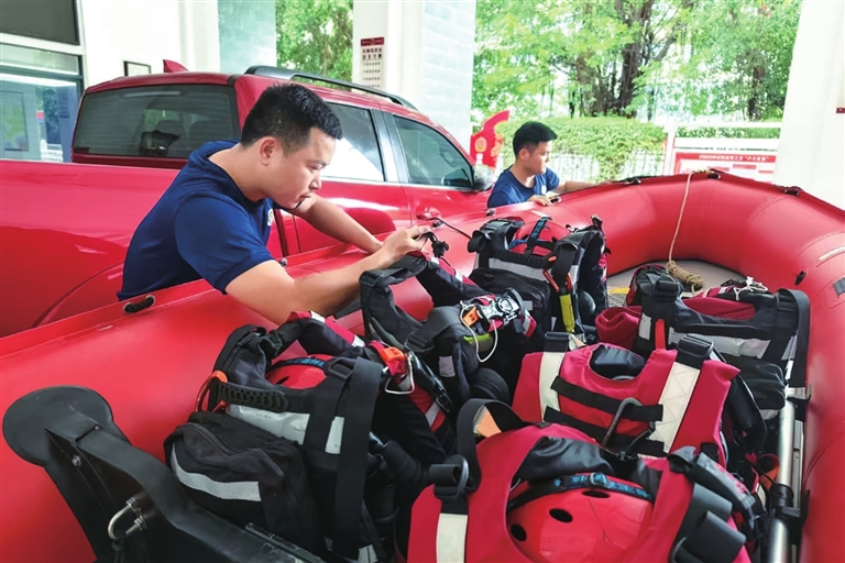 市消防救援支队组织全市消防救援队(站)对救援舟艇、车辆、器材、装备进行调配和维护,确保一旦有险情发生,能够迅速出动参与抢险救援。 本报记者 刘琪成 通讯员 莫文彬 摄