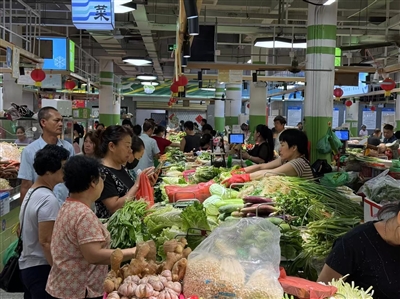 8月24日8时许,市民在市第一农贸市场采购食材。