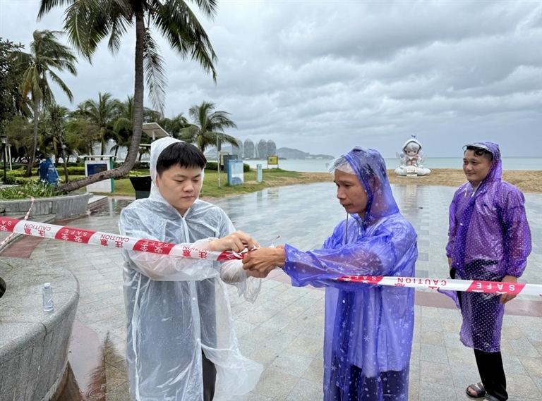 “台风马上就要来了,浪大危险,请大家立刻远离海边,不要在户外逗留!”8月24日清晨,市综合行政执法局天涯分局应急管理行政执法大队执法人员来到三亚湾沿线,开展防汛防风工作。