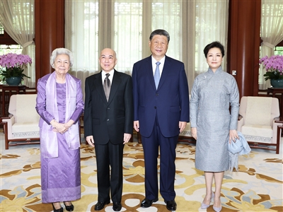 习近平热烈欢迎西哈莫尼国王和莫尼列太后再次来华,也欢迎西哈莫尼国王出席中国人民抗日战争暨世界反法西斯战争胜利80周年纪念活动。习近平表示,今年4月我对柬埔寨进行国事访问,受到国王陛下和柬埔寨人民热情友好接待,至今想起都感到十分亲切。中柬关系历经国际风云考验,结成风雨同舟的铁杆友谊,成为两国人民的宝贵财富,值得双方倍加珍惜。面对变乱交织的国际形势,中柬两国要更加坚定地站在一起,赓续传统友谊,加强团结协作,加快建设新时代全天候中柬命运共同体,为两国人民带来更多福祉。中方坚定支持柬埔寨人民走符合本国国情的发展道路,实现国家长治久安。