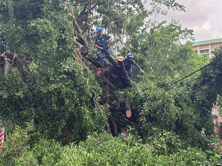 受台风“剑鱼”影响,海棠区南田社区大批树木倒伏,堵住了社区的进出通道,严重影响了当地群众的生产生活和后续有关部门救援工作。