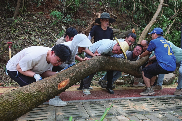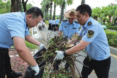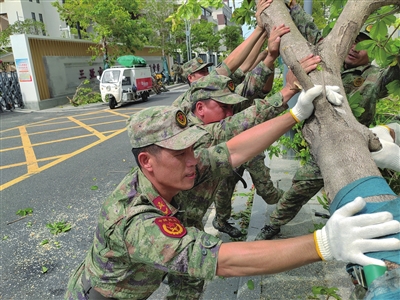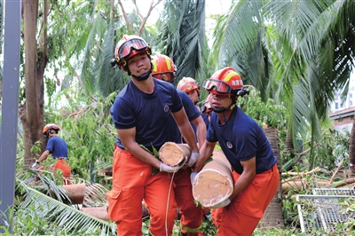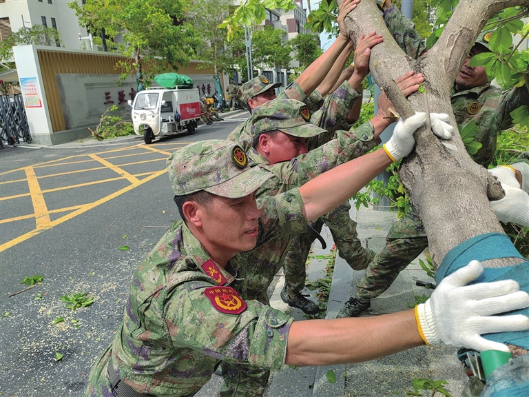从海棠湾到天涯海角,从凤凰路到三亚湾路,油锯声、号子声、车鸣声,交织成一曲恢弘磅礴的灾后恢复重建交响曲。倒伏的树木不再是障碍,而是军民齐心搬运的“聚力品”;堵塞的街路不再是难题,已成为多方协作、快速贯通的通途。