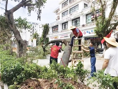 台风“剑鱼”过境三亚后,省直单位迅速组织400多名党员干部抵达三亚,其中150人驰援天涯区。他们携带专业清障工具,赶到回新社区、儋州村社区、羊新社区和友谊路社区等,开展全方位、无死角的清理工作。