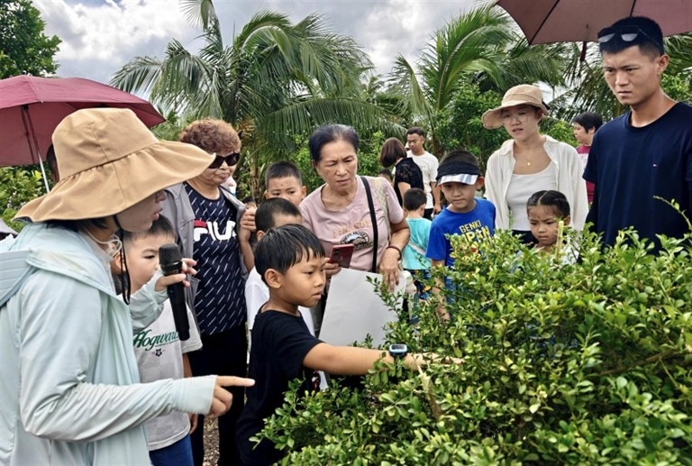 本报讯(记者 符府)8月31日,2025乙巳年崖州孔庙学童开笔礼研学活动圆满收官。连日来,200名孩子在崖州孔庙接受了开笔礼祝福后,前往三亚市热带农业科学研究院热带果树种质资源圃,了解各类“新奇特优”热带水果品种,探索自然与农业的奥秘。