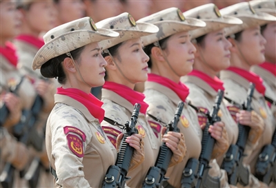 民兵方队接受检阅。新华社记者 薛宇舸 摄