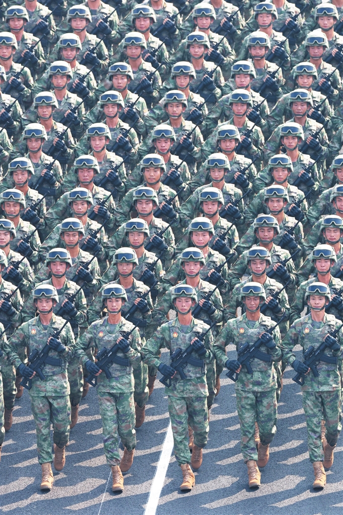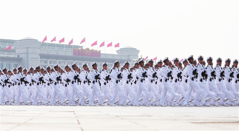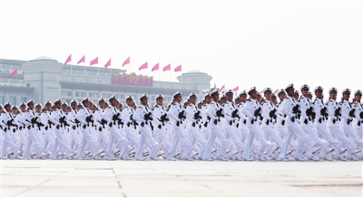 徒步方队接受检阅。新华社记者 肖艺九 摄