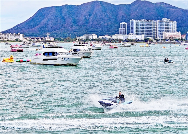 9月4日,三亚小洲岛附近海域,游艇游热度不减,错峰出海备受青睐。游客们迎着海风舒展身心,在碧波荡漾间尽享海上休闲时光。 本报记者 刘琪成 摄