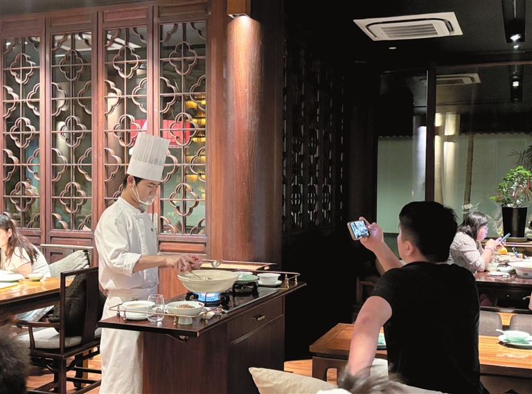 “白天浮潜,晚上回酒店吃糟粕醋火锅、海南鸡饭——没想到酒店本身就成了美食目的地。”来自上海的游客程女士告诉记者,她原本计划每天外出觅食,但入住后连续3晚都在酒店用餐,“尤其是黑珍珠餐厅‘茶苑’,从环境到菜品都充满海南文化元素,我们甚至为它调整了行程。”