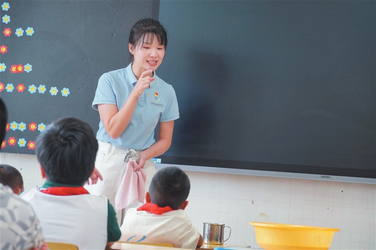 “同一内容,学生掌握速度不同。如系红领巾,有人一节课学会,有人要一学期。”康乐从不急于求成,而是循序渐进引导。她因材施教:基础差的先教认字,基础好的引导阅读。虽一节课下来,孩子专注度、进度有差异,但她坚信,慢慢引导终会有收获。