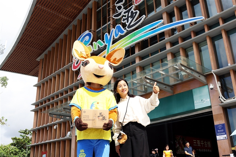 9月9日,“与三亚美好‘箱’遇”——2025三亚旅文×顺丰速运主题快递箱首发仪式在三亚旅游服务咨询中心(动车站点)举行。活动现场,2026年第六届亚洲沙滩运动会吉祥物“亚亚”吸引众多市民游客驻足拍照。