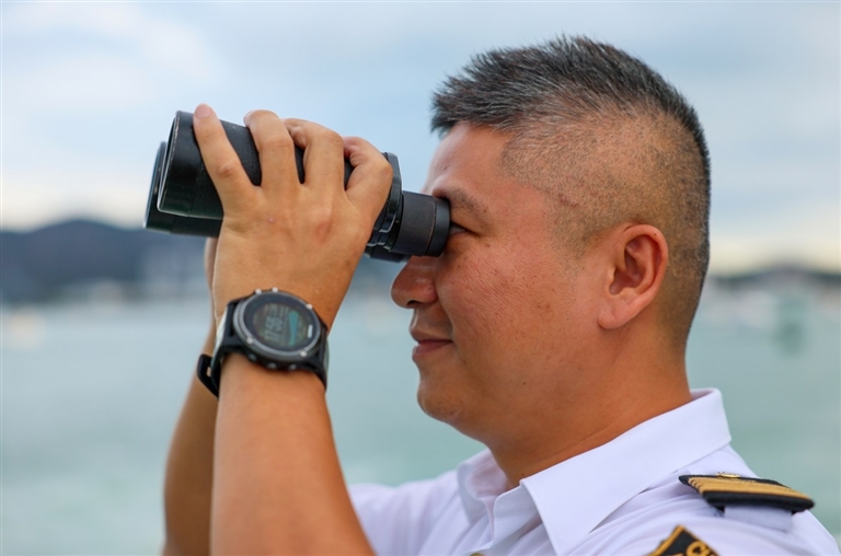 “走走走,同志们,我们现在得准备出发了。”7时20分,远眺海平面的许清林接到“领航星”号上传来的消息,该邮轮即将提前进港,需要陆上人员配合,引航靠泊。收到讯息后,他第一时间招呼着船员们乘坐引航船出发,向凤凰岛国际邮轮港码头的方向靠近。