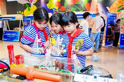 9月12日,2025年三亚市首个全国科普月主场活动启动仪式暨主题科普展在天悦城举行。活动现场,海洋航模吸引了不少学生驻足观看,直观感受科技的魅力。 本报记者 李少云 摄