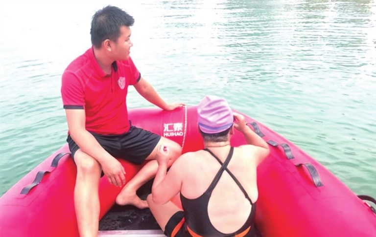 经了解,获救者为40多岁的马某华。事发时,她正在三亚湾海域游泳,虽携带了安全装备,但不知不觉游至深水区时,突然感觉腿部肌肉痉挛,无法站立,只能趴在安全装备上勉强支撑,身体失去平衡加之呛水,使她情绪极度恐慌,呼救声划破了海面的宁静。