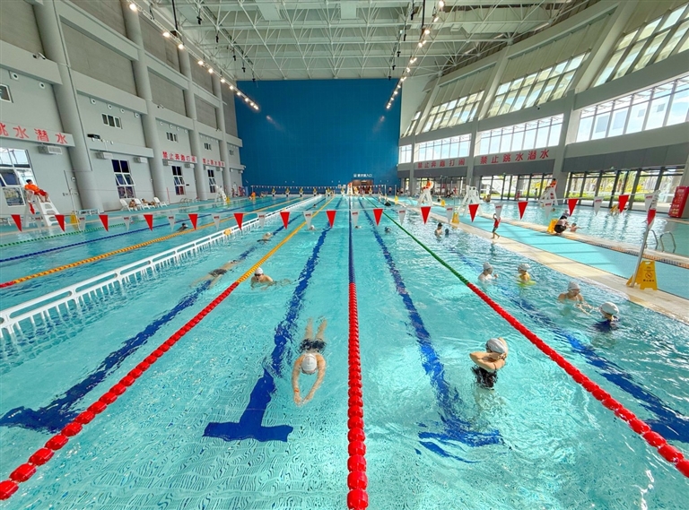 训练池主打“全民友好”,长50米、宽20米的场地划分8条泳道,其中4条为1.2米浅水区、4条为2米深水区,既能保障游泳初学者的安全,也能满足进阶爱好者的训练需求;同时,场馆还专门规划亲子戏水池区域,方便家庭群体休闲互动。