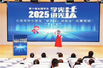 本报讯(记者 胡拥军)9月14日,由三亚市教育局主办的第十届三亚市中小学生“学宪法 讲宪法”比赛圆满落幕。本次活动吸引了全市各中小学校的学生积极参与,在校园内掀起了一股学习宪法的热潮,形成尊法、学法、守法、用法的良好氛围。
