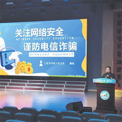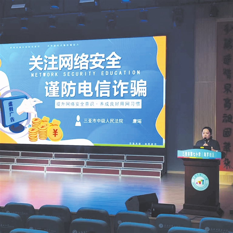 本报讯(记者 胡拥军)“玩游戏充值花了不少钱,爸妈很生气怎么办?”“防诈骗,很简单;不贪心,不妄想;不好奇,不盲从……”9月19日,市教育局联合市中级人民法院、吉阳区教育局在市第七小学海罗校区开展“趣味普法校园行”品牌活动。