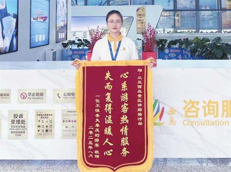 如今,西岛景区的锦旗墙上已挂满百余面锦旗,感谢信堆满3个档案盒。这些信物如同一束束光,照亮了景区前行的道路。未来,西岛将继续以“游客至上”为笔,以服务创新为墨,在碧海蓝天间书写更多温暖故事,让每一位游客都能带着“西岛记忆”满载而归。正如游客李女士在锦旗上所写:“西岛之行,失物复得;服务之光,照亮人心。”这或许是对海岛温情最生动的诠释。