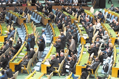 ▼在九月二十二日举行的和平解决巴勒斯坦问题和落实“两国方案”高级别国际会议期间,法国总统马克龙宣布法国承认巴勒斯坦国。前一天,英国、加拿大、澳大利亚、葡萄牙分别宣布承认巴勒斯坦国。新华社记者 李睿 摄