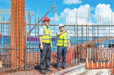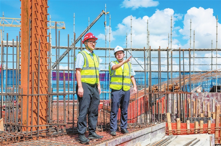 9月19日清晨,三亚湾畔,海风轻拂,海南国际文化交流中心项目工地已是一派繁忙景象:钢筋骨架纵横交错,工人们往来穿梭作业,各项施工有序推进。“这些钢梁的焊接精度必须严格控制在毫米级,它们不仅是支撑建筑的关键骨架,更是三亚向世界展示形象的重要‘文化名片’……”刚结束外地出差的胡雷,第一时间头戴安全帽赶赴现场,细致查看施工情况。