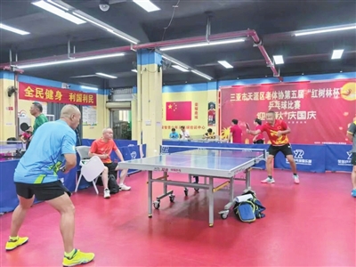 近日,天涯区老年人乒乓球比赛落幕。百余名老年乒乓爱好者齐聚一堂,以球会友。本报记者 黄世烽 摄