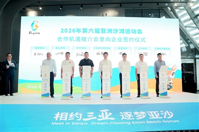 李宁(中国)体育用品有限公司、杭州安恒信息技术股份有限公司、山东泰山体育器材有限公司、重庆市三叶家具有限责任公司、武汉安德瑞尔体育产业有限公司、四川大嘴蛙环保科技有限公司等6家企业与三亚亚沙会执委会签署合作意向,标志着三亚亚沙会市场开发工作取得阶段性进展,为后续企业参与增强了信心。